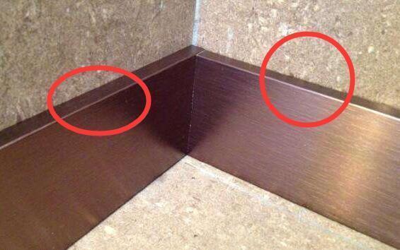 在我们安装踢脚线的时候,这个安装的形式,大家可以尽可能的选择暗贴踢脚线,如果要明装踢脚线的话,这个踢脚线的厚度千万不要太厚,这一来比较容易落灰层,二来这个踢脚线很容易阻碍家具,家电贴墙摆放,这样的话,就会出现死角缝隙的,非常的难看,难搞卫生的。